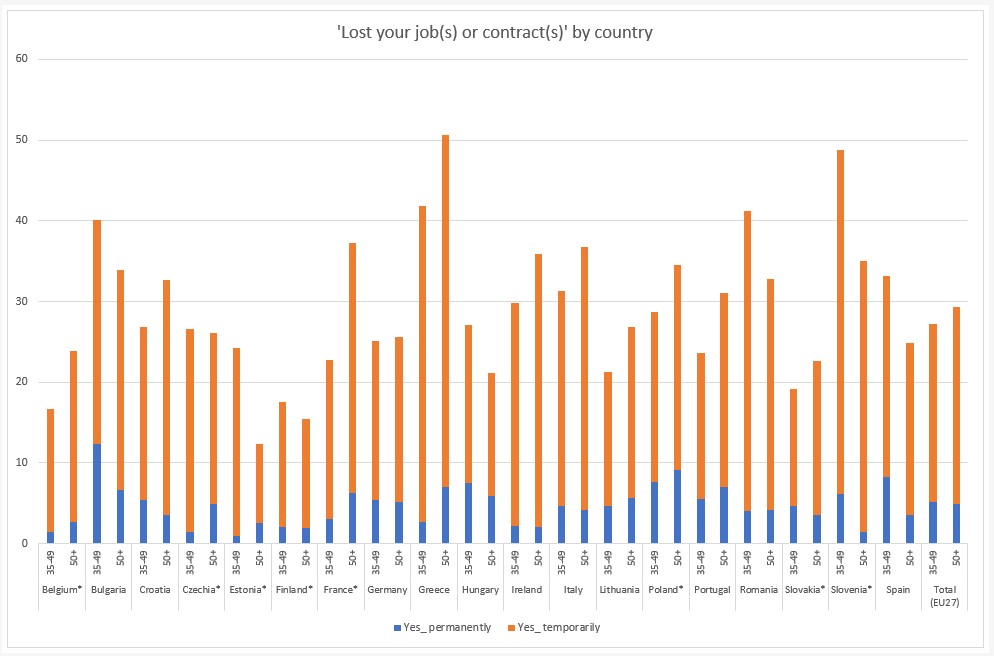 Source: Based on Eurofound (2020), Living, working and COVID-19 dataset, Dublin, http://eurofound.link/covid19data. Excluded EU countries had insufficient data, data on countries marked with (*) is low reliable.